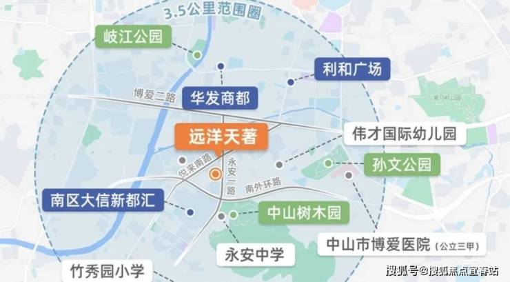 远洋天著二期选址中山东区CBD和公园城夹角处的城南板块,这里是中山主城四区交汇的核心“C位”。业主可享受四区带来的配套利好,拥有3.5KM漫步生活圈。更难得的是,直线约600米处就是大湾区公园群入口,万亩森态绿境近在咫尺。此外,板块近年不断升级,金钟湖公园城群焕新、永安中学开学、中山首家天虹购物中心开业。2024年6月深中通道和中开高速通车,项目出门可上中开高速直达深圳。中山首条“地铁”施工顺利,未来可便捷直达广州市中心。