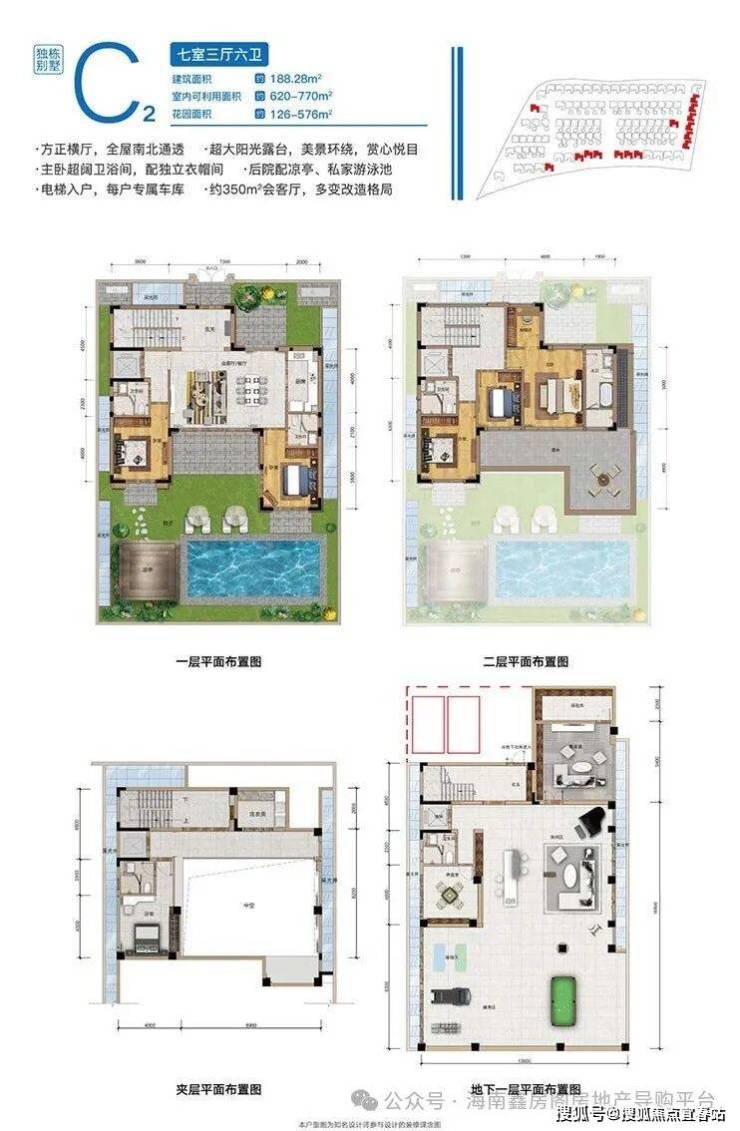 三期康养平墅,双⼊⼾⼤堂,约3.3-3.9⽶层⾼,专属地下⻋位。一梯一户,⼊⼾尊享奢敞花园,超⼤双重观景阳台,自配500㎡私属泳池,另享约2000㎡康悦泳池。