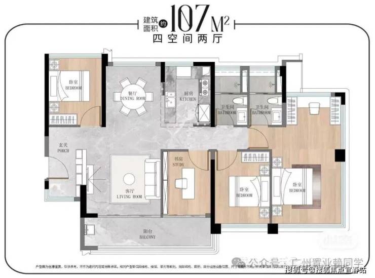 🔹建面约107㎡舒适改善四空间