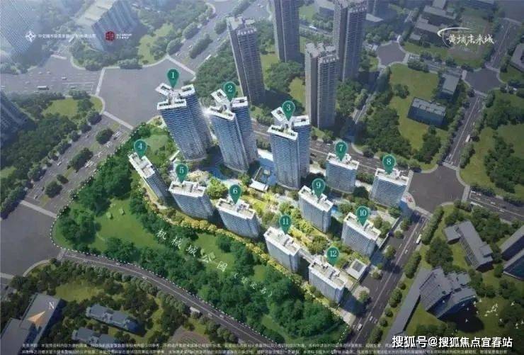 总共设计了12栋楼,北面三栋高层,1栋31层,2、3栋32层,均为两梯四户,全南向设计。 其余9栋皆为小高层,都是16层高,南北对流设计。
