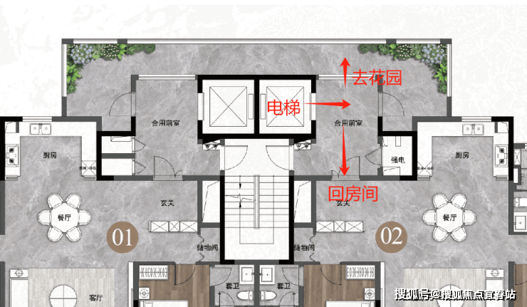 发现没有,板楼就完全不会存在分割的纠纷。并且是专梯入户,电梯一出来就是自家可以用的空间,往北出去就是平台花园,种花种树,往南就直接回家,确实不错!