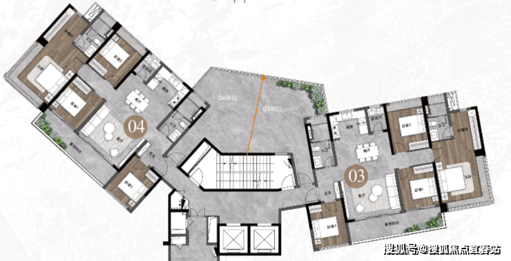 不过呢,如果你是买板楼,那分割平台花园到不难,因为面积和格局基本是对称的,可以很好的分配。不信,来看看下面4栋的户型图!