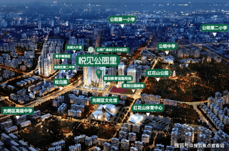 宏发悦见公园里项目位于深圳市光明区公明街道松白路和红花中路交汇处,项目前身为光明达叁旧改项目,东临红花中路、南临松白路、西临宝来路、北临振明路宏发悦见公园里地块整体占地面积约3万㎡,总建面约33.8万㎡,是集住宅、商业、写字楼于一体的城市综合体综合体。