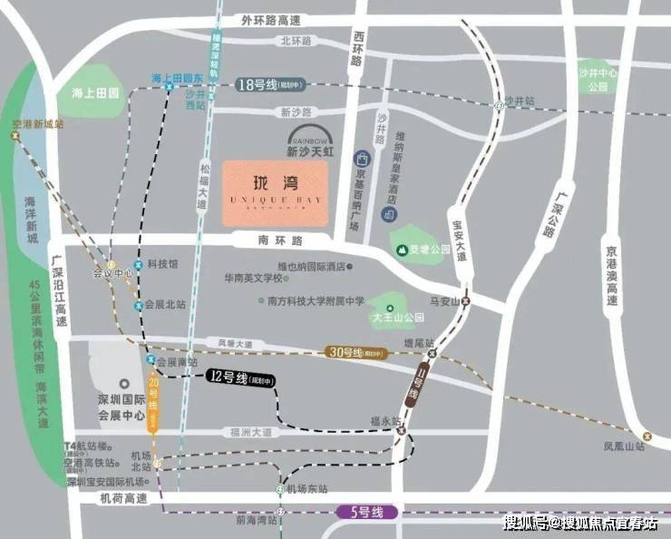 铁:穗莞深城际已在去年开通,南延段第一期至前海已开工,南延线二期规划到皇岗口岸,将与深圳地铁11、20号线接驳。目前区域内还有在建的深茂铁路、规划中的空港高铁站
