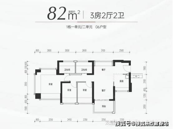 82㎡三房两卫:折后总价 280 万起,单价约 3.59 万元 /㎡。