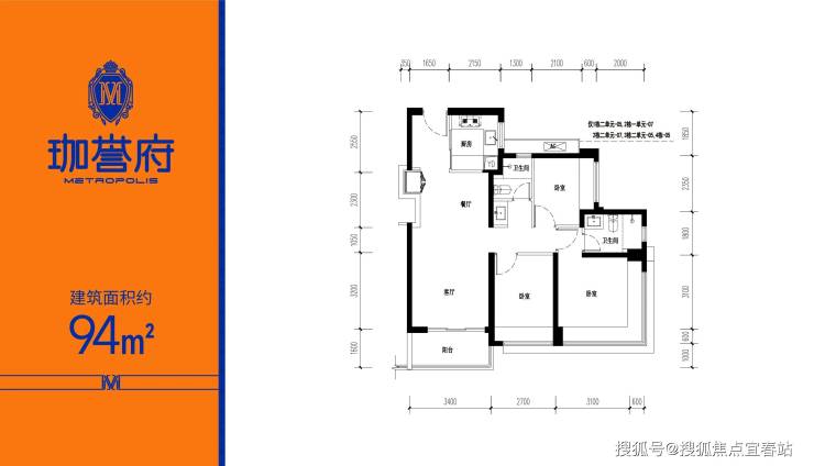 | 约94㎡(竖厅)三房两厅两卫【总价约435-512万】