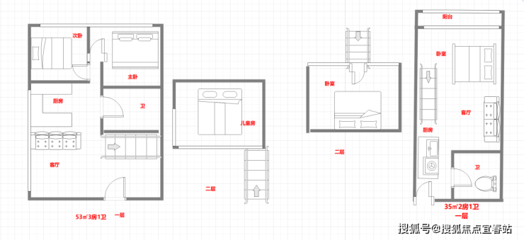 🏅产品:层高3.6米,35㎡两居,53㎡三居,带阳台,通燃气,精装修,真公寓