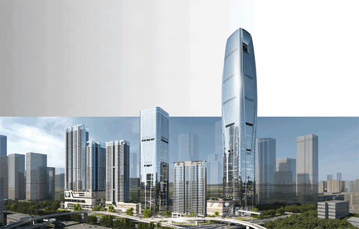 约63万㎡城建云投创新金融总部基地,以约380m地标云投大厦,勾绘城市天际风景线