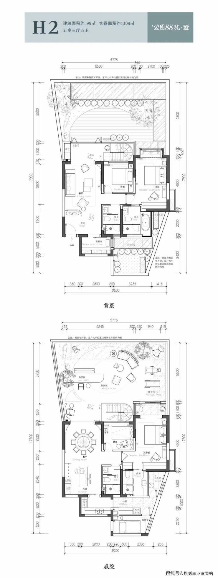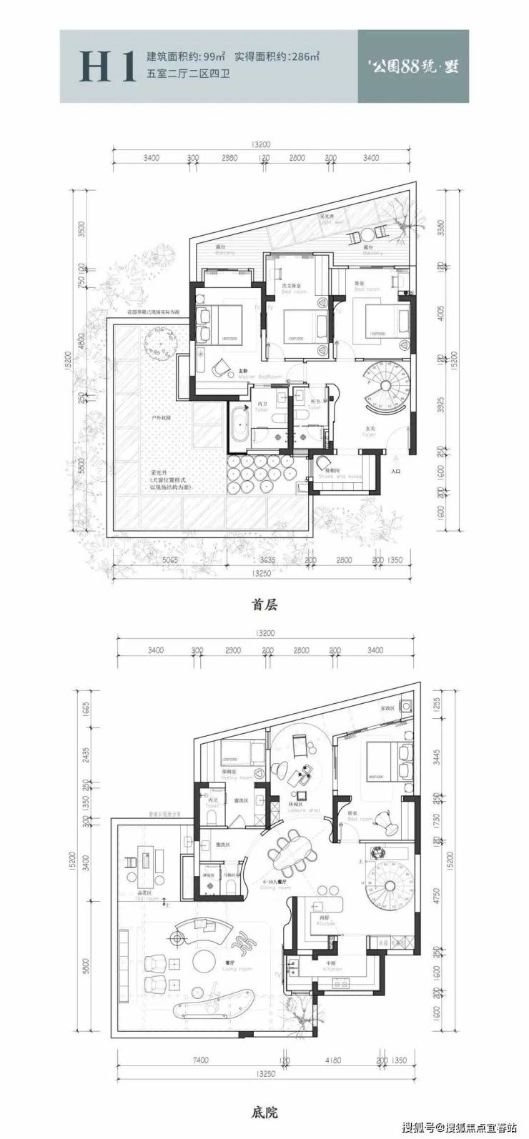 双庭院 双主卧套房设计