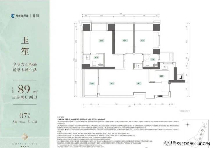 💎约89㎡3房2厅2卫史上入驻海岸城!!最低门槛户型!!💎户型亮点:• 玄关“S”墙设计,满足冰箱和入户收纳柜• 进深约1.75m大阳台,轻松打造私家小花园• U型厨房设计,洗切炒动线合理布局• 主卧衣帽间+双面飘窗,小户型大享受