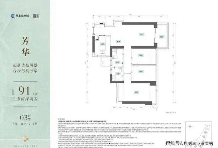 万丰海岸城B区首发之作 新规户型超高实用率南北向点式排布,保证每栋每户通风采光,东向无遮挡公园景观视野