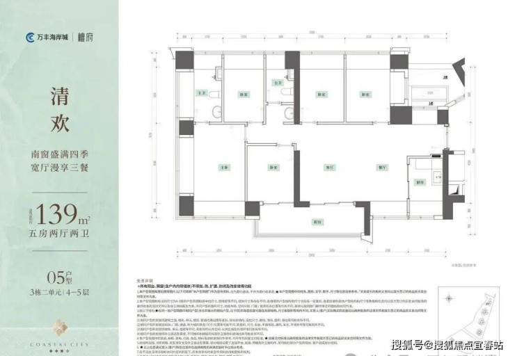 💎约139㎡5房2厅2卫南向横厅大五房,南北通透,片区独有!💎户型亮点:• 15米大面宽,约6.8米景观阳台,无遮挡公园视野• 奢配主卧进深4.5米,主卫双飘窗采光可作双台盆• 全屋12个飘窗,懂收纳更懂空间使用