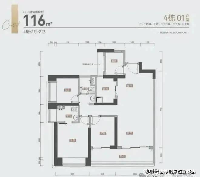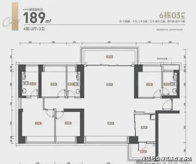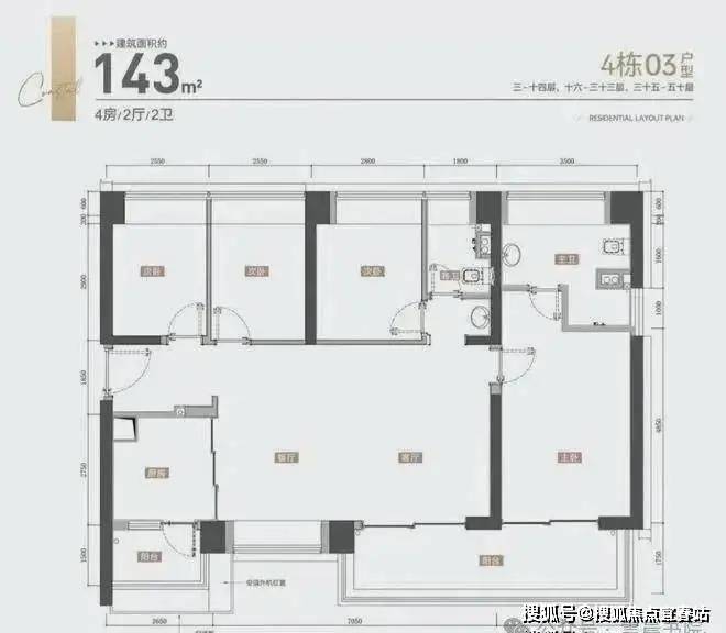4栋、5栋:4梯5户,层高3.1米,01-02户型116平3房2卫,03、05户型142平4房2卫,04户型120平3房2卫;