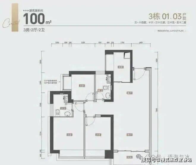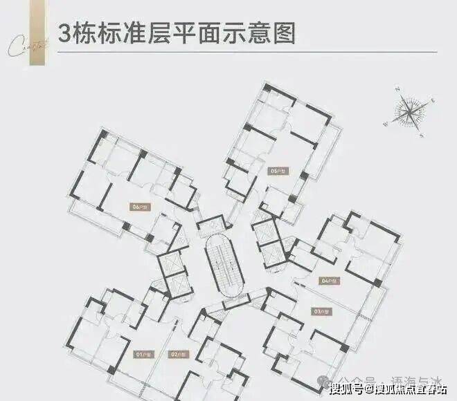 3栋:4梯6户,层高3.1米,01-04户型100平3房2卫,05-06户型120平4房2卫