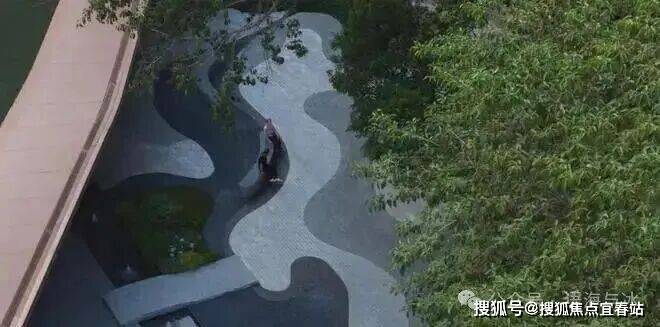 山水,来自于社区内裂谷式山水瀑布,以”山水涧“为名。充分利用地面高差打造“双层山林会客厅”,将山、水、台进行融合,约4米落差瀑布与红果冬青、双色野鸢尾等等30种名贵花镜植物,在城市中央营造一处悠闲而惬意的山水空间。