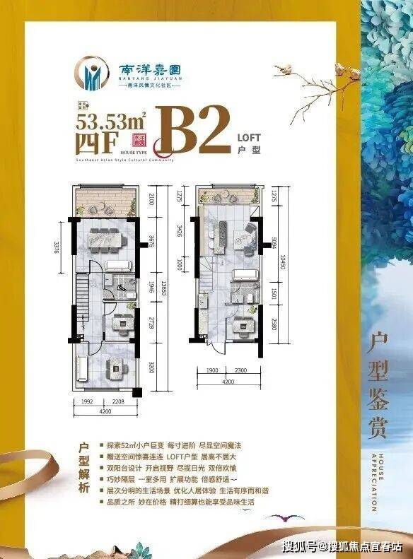 B2户型 LOFT 约53㎡ 四室两厅两卫