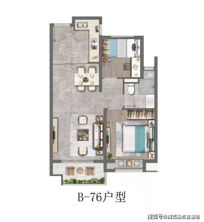 两间卧室分别位居于客厅两侧,私密性更佳;