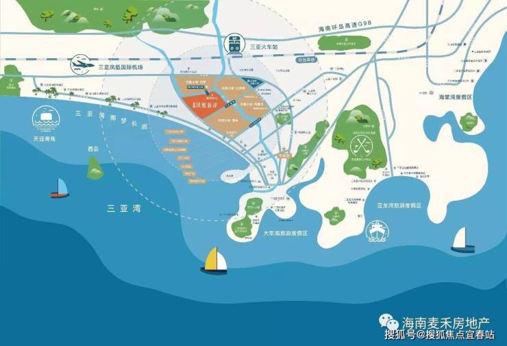 项目位于位于三亚湾景观腹地,三亚河之南,坐拥山、海、河、城天然人居位置。距海岸线仅600~800米,三亚湾17公里海域一览无余,120米的原生态河滨景观,背依五指山余脉,遥瞰金鸡岭公园,三亚河原生态河滨壮景,7000㎡人工沙滩,绝美的地域传承。项目尊处城中央主轴核心,奢想城市假日的便捷生活,紧邻三亚市中心,有良好的交通区位优势,享有最新城市市政资源支持,承接着三亚城市脉络的未来走向。中央政务区(行政中心、体育中心)、中央生活区(商业中心)、中央生态区(中央公园)紧邻项目;凤凰国际机尝三亚新火车站、三亚汽车站、解放路步行街、三亚湾海岸线、亚龙湾等高端城市假日生活瞬间畅达。一边是海湾的泊静,一边是城市的繁华,游走在繁华与宁静的边缘。