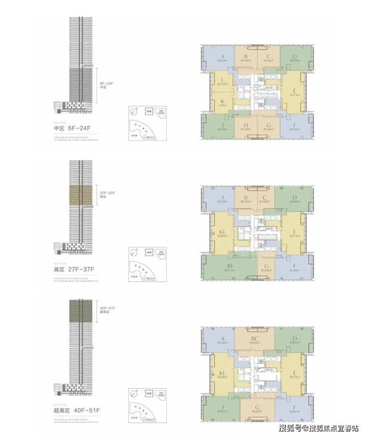 项目52层,分为中区、高区、超高区,6层起卖,11、39F为避难层,25-26F为空中会所,28F为空中大堂。除了空中大堂项目还有地下入库大堂+首层大堂,一共三重大堂。