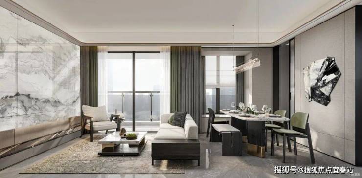 现代简约立面,高颜值城市封面;铝板+系统门窗+双层LOW-E玻璃,提升隔音降噪性能。