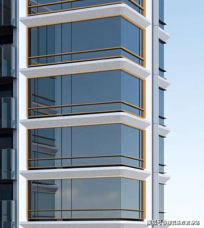 立面设计以“温暖港湾”为灵感,独具识别性。从广深沿江高速、深中通道的视角看,天际线呈前中后三个层次高低起伏,形成流动天际线。