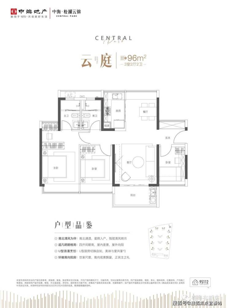 ③建面约96㎡三房两厅两卫——云庭