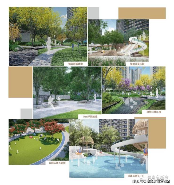 一山一林两园双轴;,定制融亲子与健身的浅滩式度假泳池、规划建面约2700 ㎡大型全龄儿童乐园,浅山坡地高尔夫球场式草坪、约1公里环氧光影跑道;