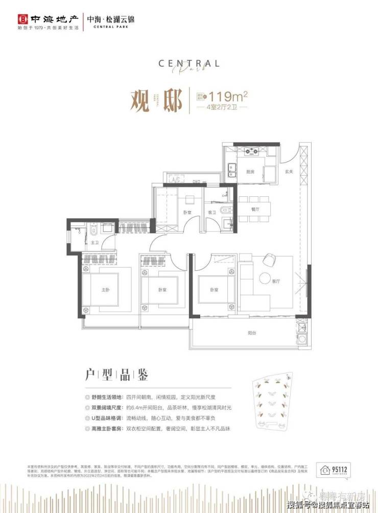 ②建面约119㎡四房两厅两卫——观邸