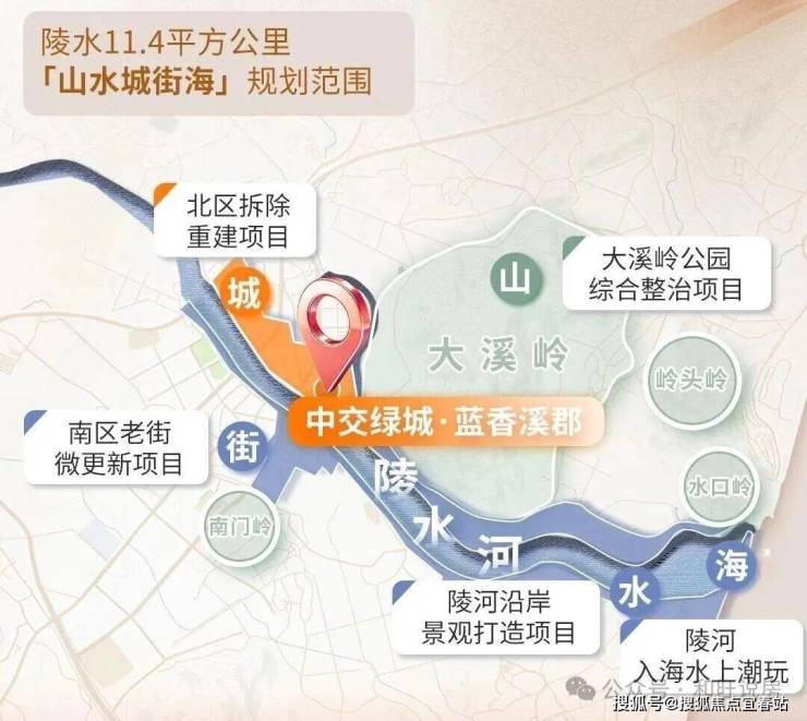 项目规划总面积约11.4平方公里,涵盖五大板块。依陵水河开发,傍山望海、融城蕴街,构建集栖居、商业、产业于一体的“山、水、街、城、海”功能复合型滨水理想新城。