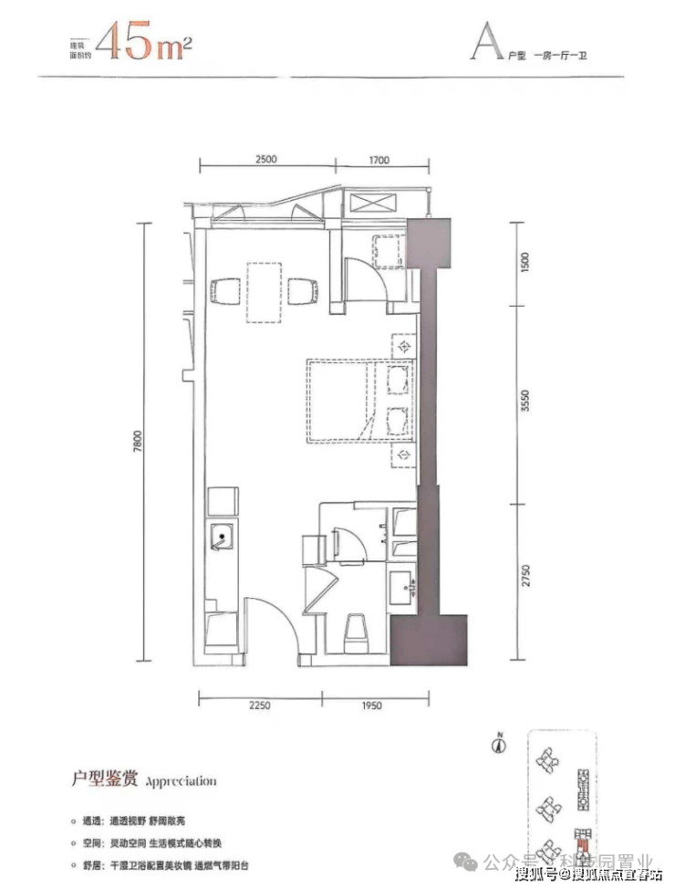 45㎡一房一厅 235-252万