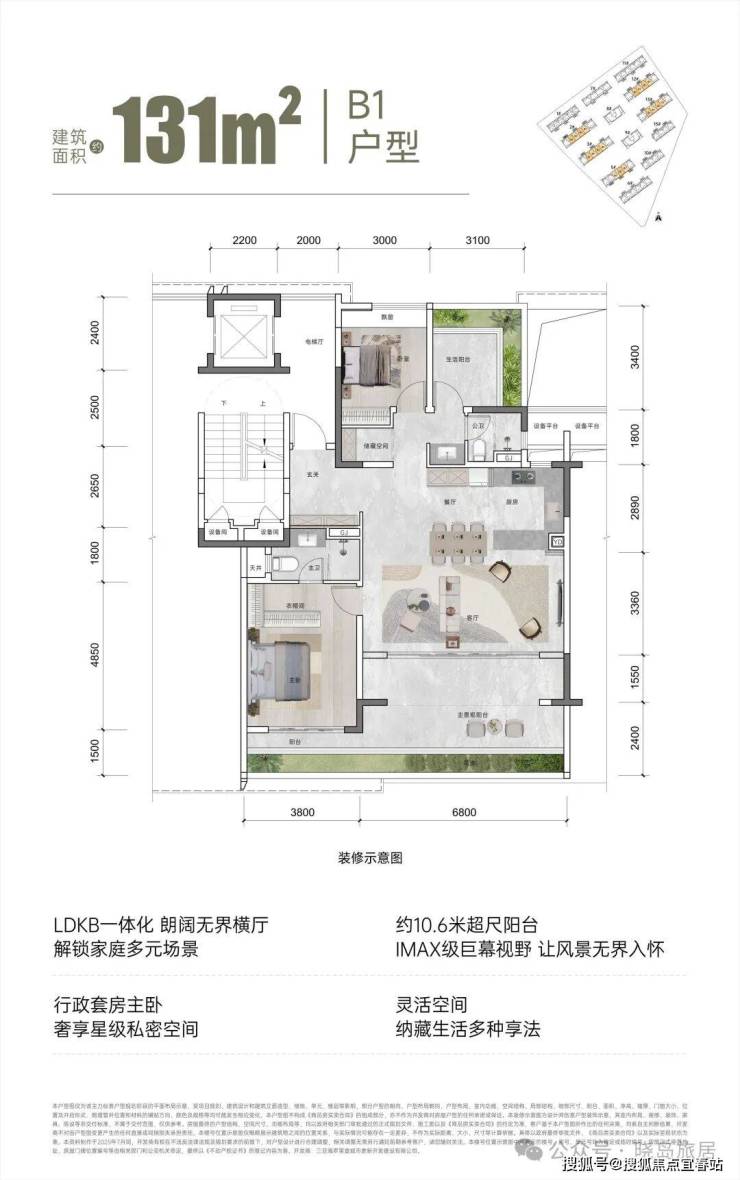 【面积区间】建筑面积约110㎡、131㎡、143㎡、195㎡