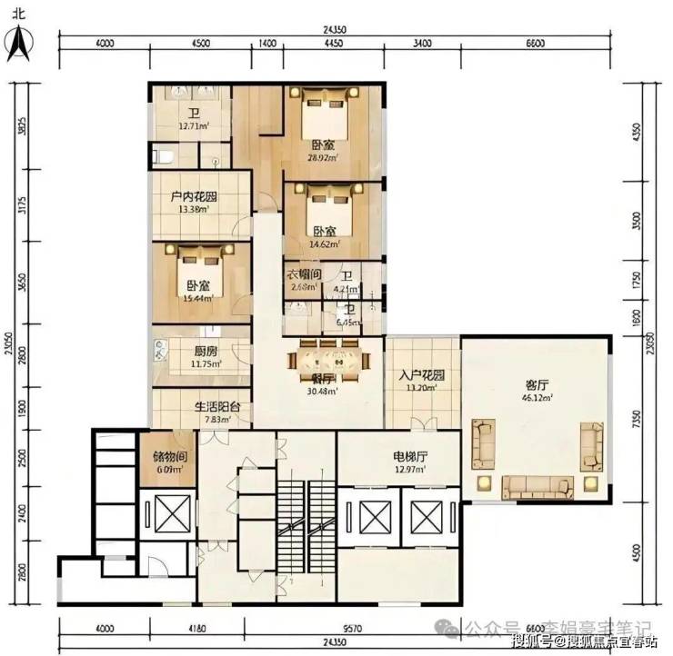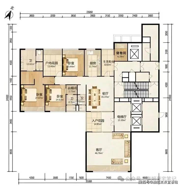 C户型:249㎡ 三房两厅三卫(49套),可改性强,室内花园(开间2.4米)可改为书房或第四卧室,主卧次卧都朝南,赠送多,实用达80%,不过低层景观几乎被春笋体育馆遮挡,无法看海景。
