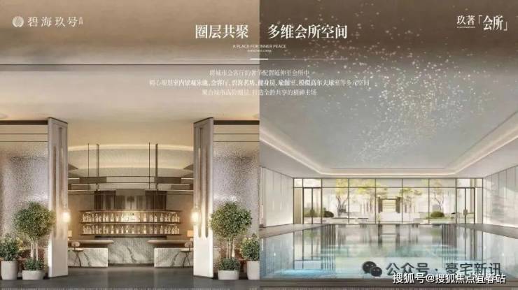 涵盖室内景观泳池、会客厅、碧海茗坊、健身房、瑜伽室,沉浸式室内高尔夫球等多元化空间,打造全龄共享的精神主场。