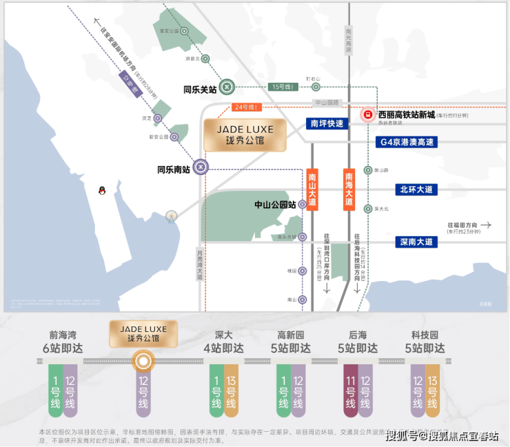 15号线同乐关站(在建中,预计2028年12月开通),串联宝中/前海/深圳湾/西丽,也被称为深圳“一环线”,本项目为环线上的重要一环;