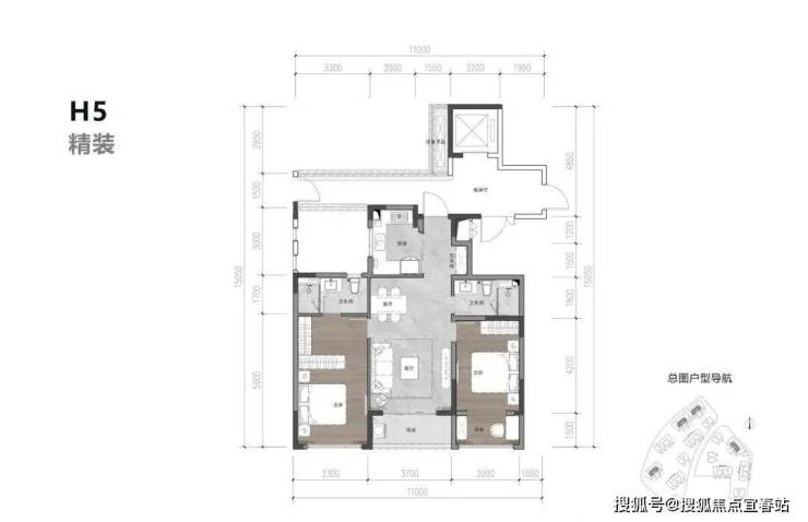 2、110平米三房两卫