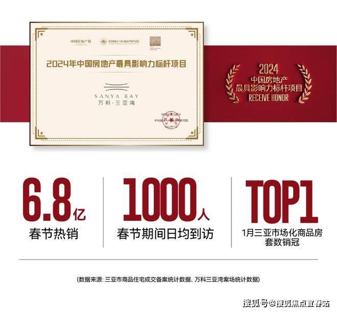 万科·三亚湾在2024年展现出了惊人的热度和流量。数据显示,全年累计到访人数突破6万人次,全网话题热度更是超过2000W,堪称三亚楼市热度和来访量的“双料冠军”。其热度不仅源于购房者的追捧,还吸引了同行的关注。2024年全年,同行与各界团体参观次数多达246次。许多“后发”项目都在一定程度上借鉴了万科·三亚湾的设计理念,但万科·三亚湾的原创性和统一性使其具有独特的魅力。例如,它首次在三亚住宅产品中引入“酒店式底盘”,这一创新举措具有划时代的意义。
