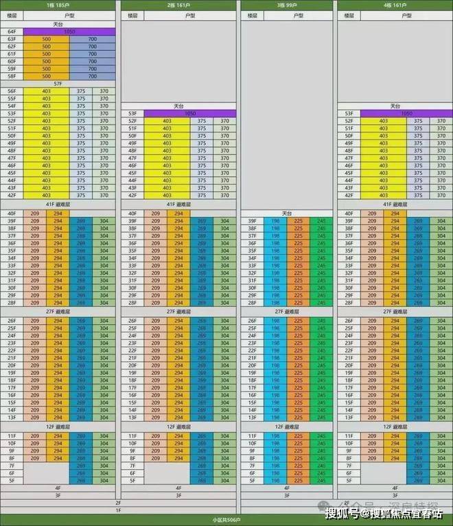 超高区(58层起,200米以上):约500-700㎡顶级大平层。