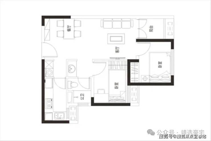 户型功能:60-80㎡市场主力面积段,多样面积自由组合。