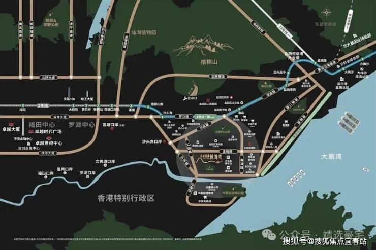 商业配套:一公里范围内中英街、乐活城、壹海城、免税城四大商圈集群,组合为约40万㎡沙头角城市客厅,层层放大商业集群效应。