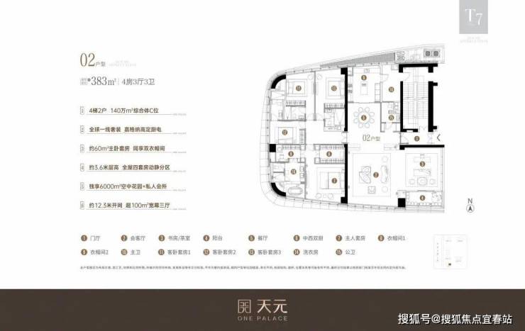 【T7-01户型鉴赏】约393㎡四房三厅六卫