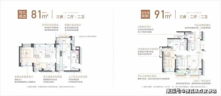 ①精聚焦青年家庭需求,联发精研定制建面约81/91㎡超能三房两卫成长空间,综合使用率高;