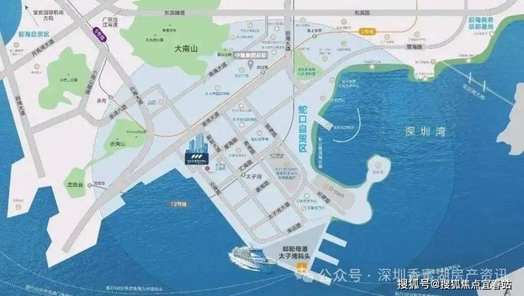 三大核心经济驱动:旅游红利,邮轮母港引擎:漂浮在海上的黄金产业,带动城市第三产业快速发展。实现旅客吞吐量将超过150万人次/年,1:10直接经济效益,带动周边物业价值攀升。总部经济:300m超甲级写字楼,世界商务集群、创意办公,全球名企总部聚集,高净值人才涌入,土地价值日益凸显,总部经济带动区域腾飞,这里是“前海扩容和香港北部都会区”两大重要战略的枢纽,时代赋予这片区域优先发展的红利,南山区也提出以赤湾片区、太子湾片区、蛇口片区为主要承载区,瞄准海洋科技、海洋文化、港口经济等产业方向,打造约12平方公里蛇口国际海洋城
