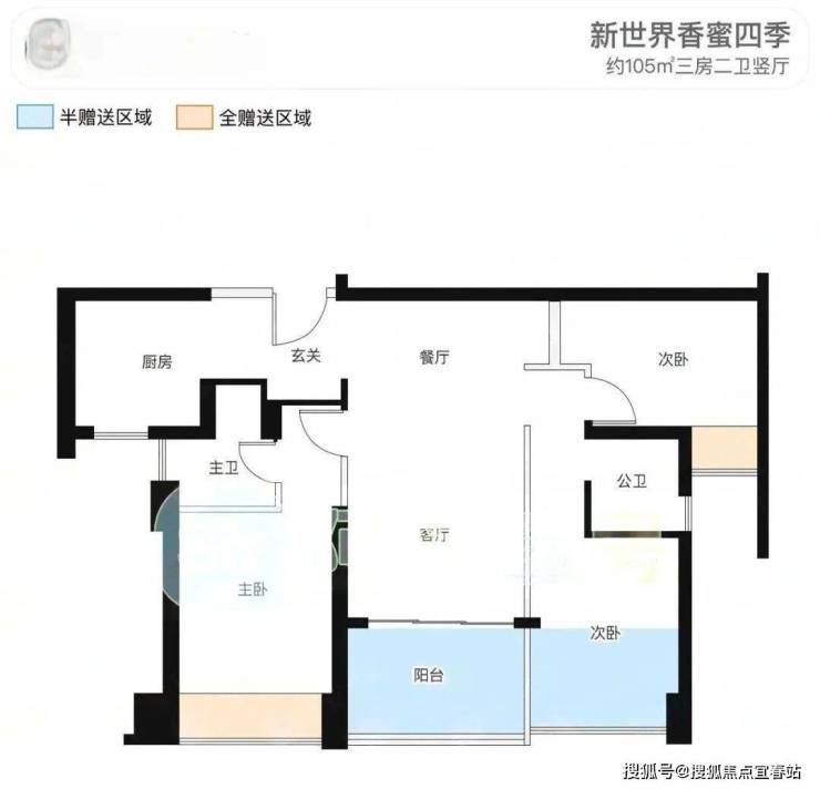 【建筑面积105㎡3房2卫】