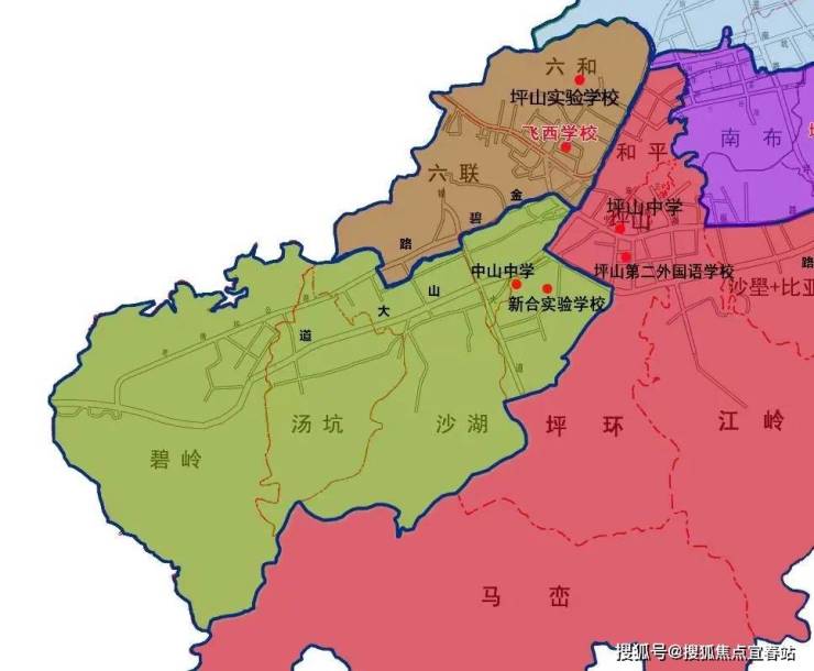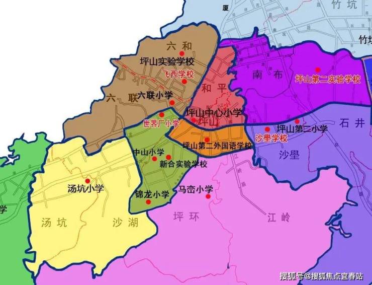 初中学区为坪山中学与中山中学组成的大学区(实际以教育局等相关部门公布为准)。