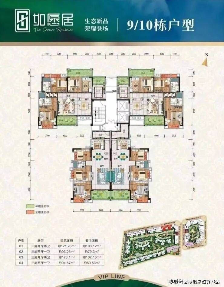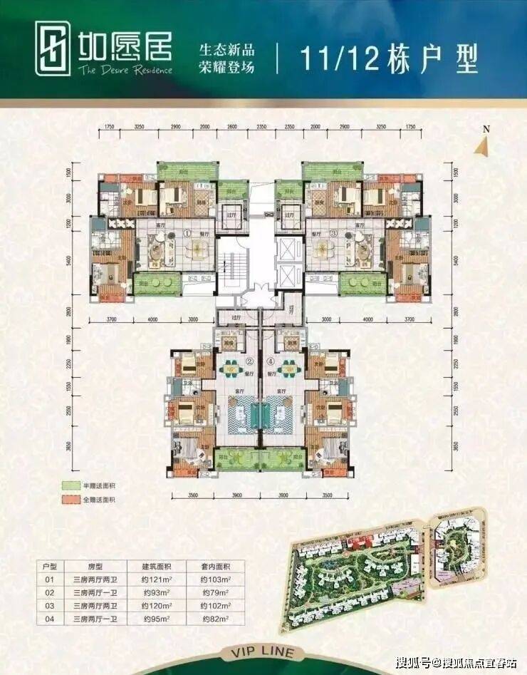 户型优势建面约93-120㎡南北向园景房