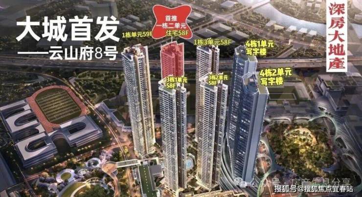 本次首推的08地块,备案名:未来平方云山府,由鸿荣源集团打造,共分3期建设,总占地面积约2.73万㎡,总建筑面积约37.41万㎡,计容建筑面积约27.51万㎡,容积率9.23,绿化率32.01%,共由5栋58-59层高住宅组成,其中1栋1单元住宅59F,1栋2/3单元住宅58F,3栋1单元/2单元住宅58F,4栋1/2单元写字楼35F,2栋是1所18班幼儿园,配建有公交首末站。