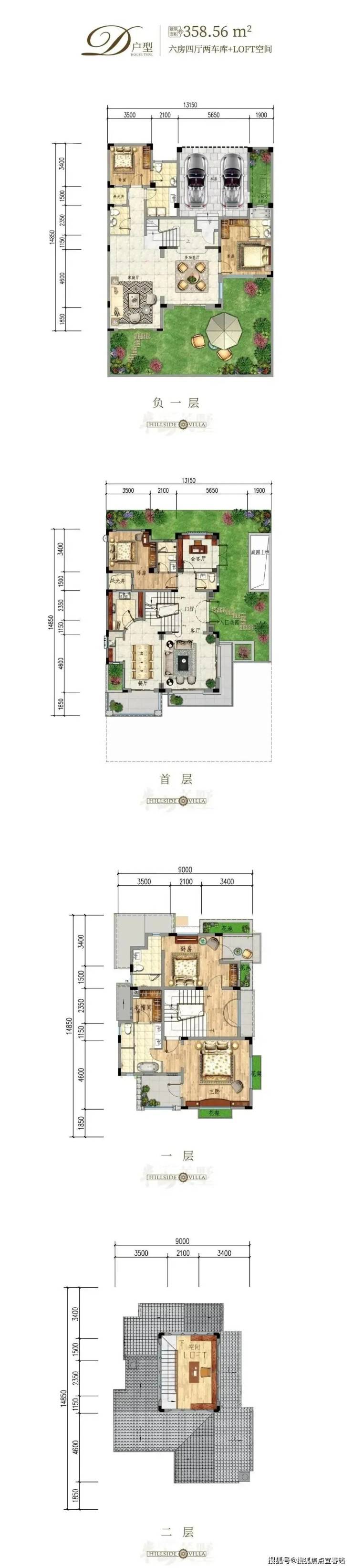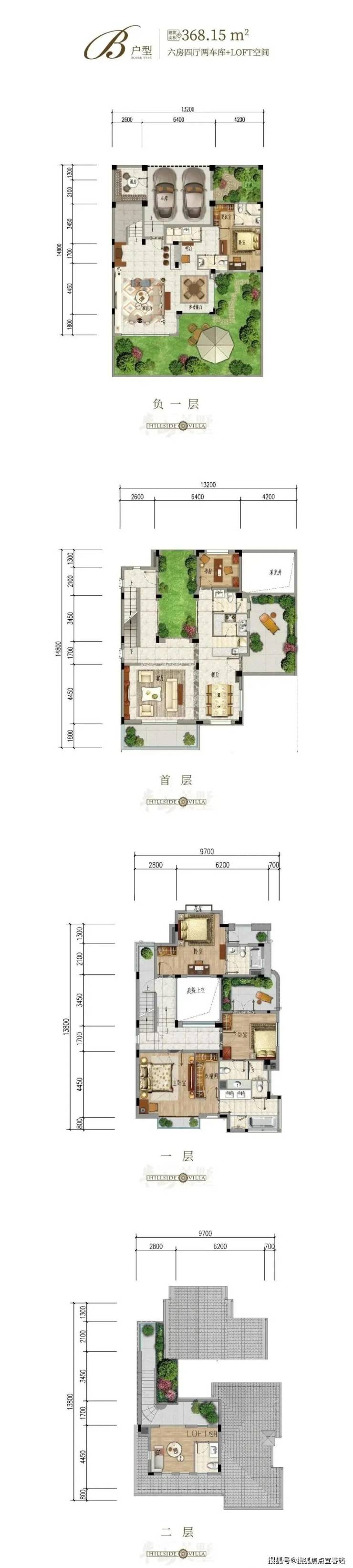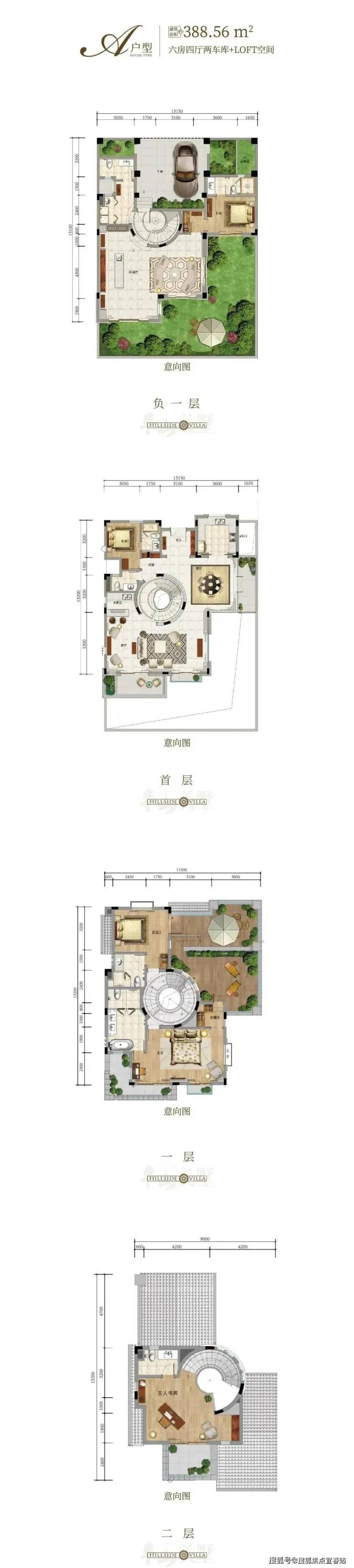 1、半山美墅(达西庄园)别墅组团,单套建筑面积:约350-388㎡