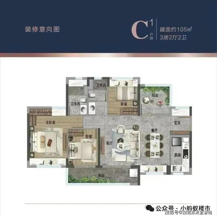 针对需要更多空间的家庭,89-105㎡户型提供了更为宽敞的居住体验。各个空间户型方正,后期空间利用率高;整个空间全明通透,采光良好,同时利于居住空间通风。