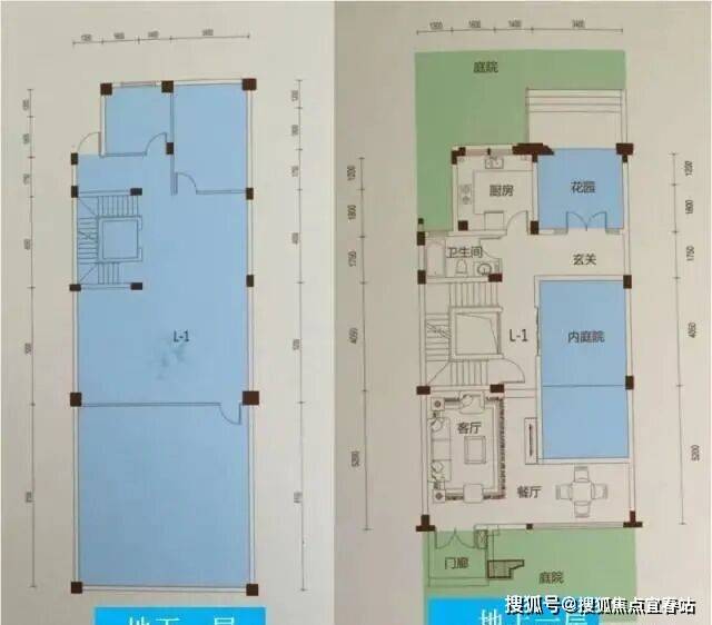 联排别墅中间套,L1户型面积仅189.59-190.48㎡,但蓝色部分均为附送面积,不算花园部分,仅建筑部分扩展后面积就达500多平米,充分利用了挑高,镂空及局部搭建,其建筑面积扩展后可以大大提升实用效果。