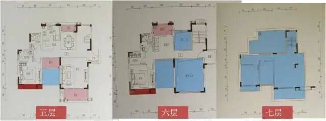 叠加别墅上户,五、六、七层,建筑面积163.35-163.55㎡,虽没有地下室附送面积,仍有天台附送空间。